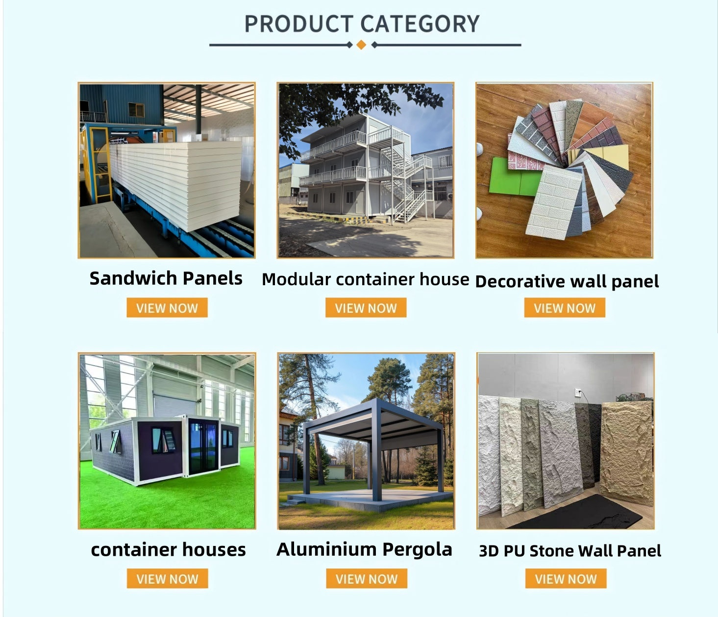 Prodotti principali: Pannello Sandwich, case del contenitore, pannello isolante, tubo d'acciaio senza saldatura, struttura d'acciaio